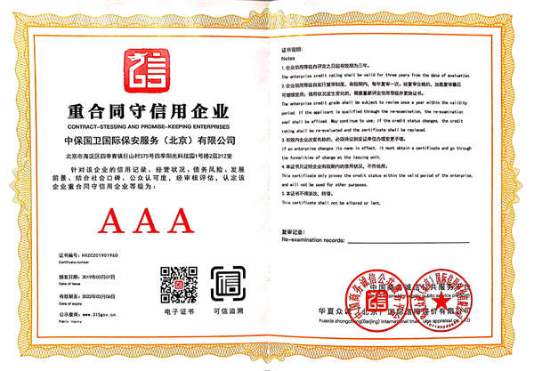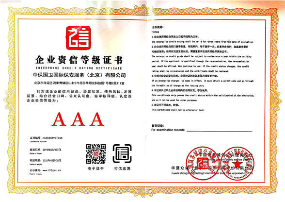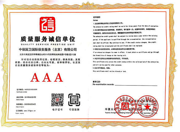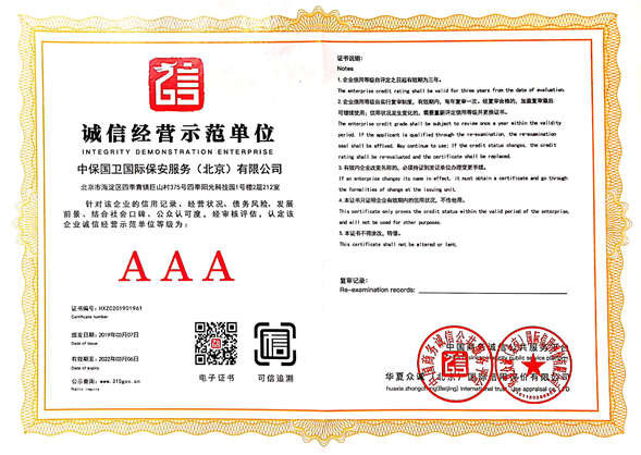 中保國衛(wèi)國際保安服務(北京)有限公司,屬中保國衛(wèi)集團旗下子公司。能全方位的為大型客戶提供優(yōu)質(zhì)的安保、押運服務,是集人防和技防于一體的新型正規(guī)化綜合安保押運服務企業(yè),提供人防、物防、技防、聯(lián)網(wǎng)報*、非武裝押運等安防相關(guān)的一站式服務。 公司在國內(nèi)多省設立有分公司及分支機構(gòu),著重提升安全押運、智能技術(shù)押運及安全技術(shù)防范相關(guān)的服務,業(yè)務范圍覆蓋全國一、二線城市、港澳地區(qū)以及海外地區(qū)。安保方面主要為政府機構(gòu)、金融機構(gòu)、企事業(yè)單位、醫(yī)療衛(wèi)生、高等院校、工業(yè)園區(qū)、大型商場、高檔住宅、智能商務樓、大型活動提供門衛(wèi)、守護、巡邏、押運(非武裝)、安全檢查、保安特勤、私人護衛(wèi)、消防中控、安全技術(shù)防范、遠洋護航等全方位服務,同時面向國際市場,為中資企業(yè)在“一帶一路”沿線國家投資提供境外安保服務。 >> 更多內(nèi)容 |